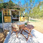 Gli ospiti possono cucinare i propri pasti in un angolo cottura o cenare in una zona pranzo all'aperto. Sono presenti anche un frigo e utensili da cucina per preparare i tuoi pasti.
